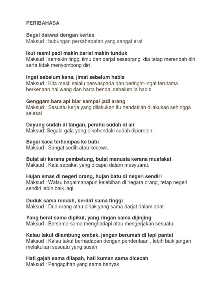 Contoh Ayat Peribahasa Bagai Dakwat Dengan Kertas